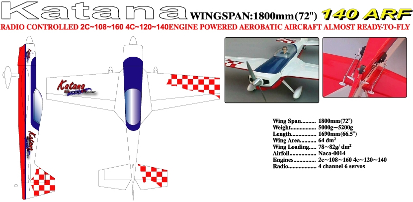 Rozpiętość / Wingspan Masa startowa (z silnikiem itd.)/ Weight Długość / Length Pow.nośna / Wing Area Silnik / Engine size RC